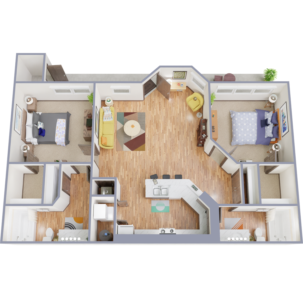 2 Dormitorios, 2 Baños, 930 pies²Galería del Modelo
