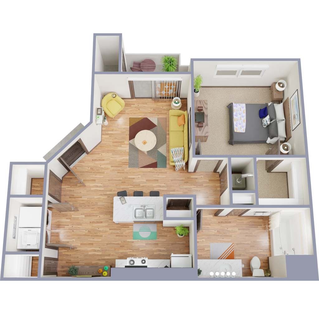 1 Dormitorio, 1 Baño, 718 pies²Galería del Modelo