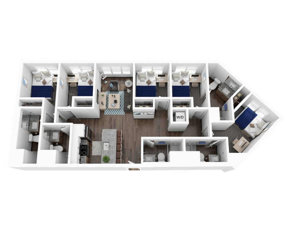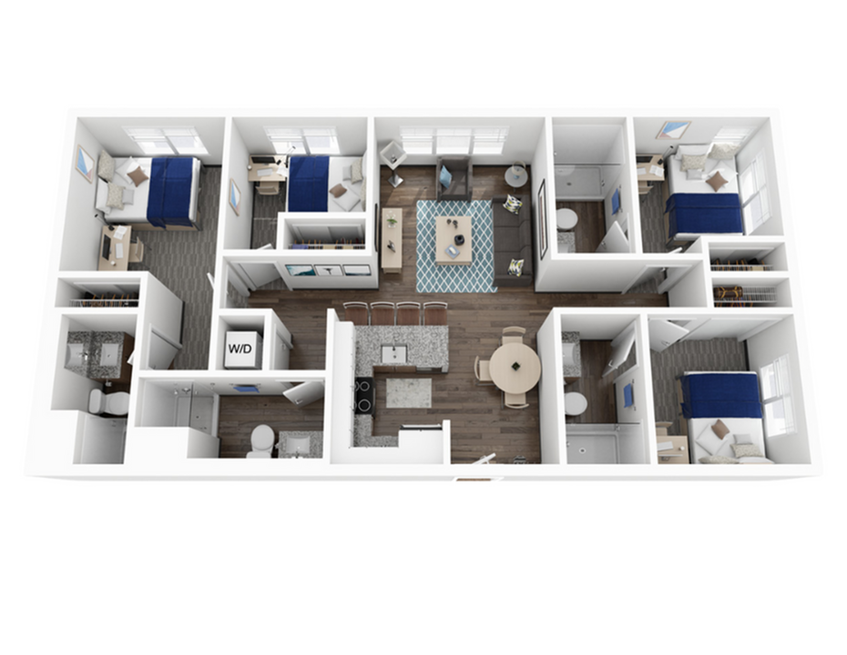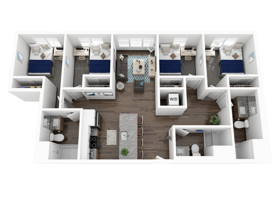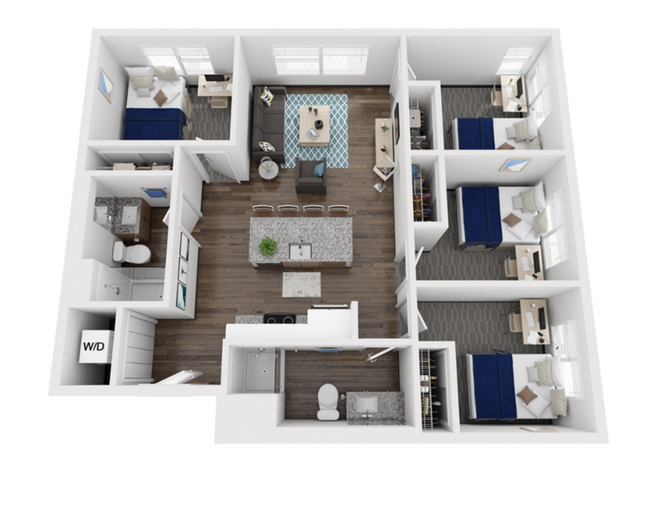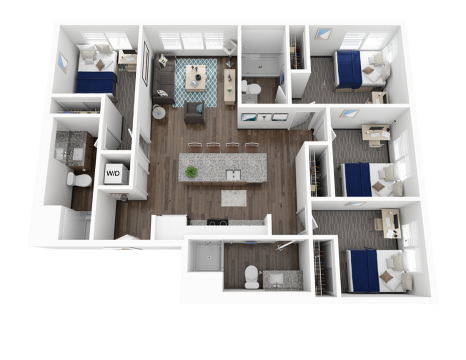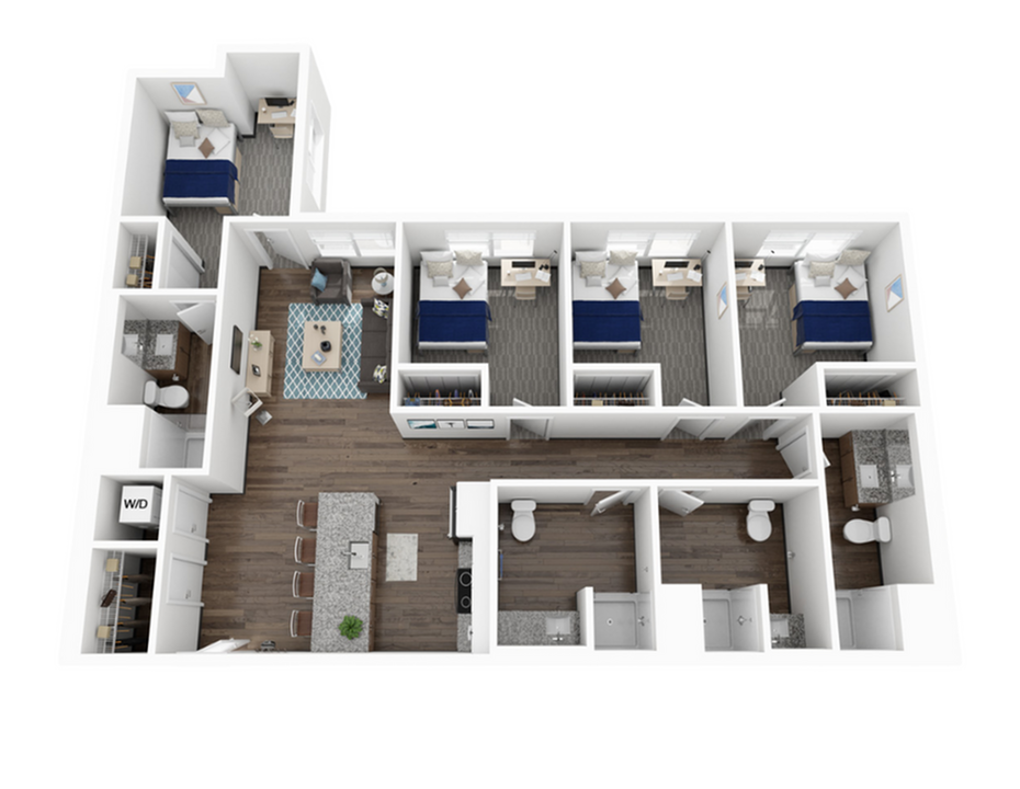 Encuentra tu propio camino en Fifteen51, el excelente complejo para estudiantes fuera del campus de UNR. Con una selección de características y servicios en el hogar y el complejo, ID Reno hace que vida académica en persona, a distancia o combinada sea un poco más fácil. Obtén el máximo provecho de tu experiencia universitaria al vivir dentro de nuestro elegante complejo. Elige entre nuestra selección de suites tipo estudio, de una, dos, tres, cuatro o cinco habitaciones diseñadas pensando en ti. Los recorridos en persona están disponibles ahora, o bien puedes disfrutar de un recorrido virtual desde tu comodidad. Esta publicación incluye planos de planta que pueden ser para el 22-23 o 23-24, año, ponte en contacto con la oficina de arrendamiento para obtener la disponibilidad opciones que se adaptan a tus necesidades.