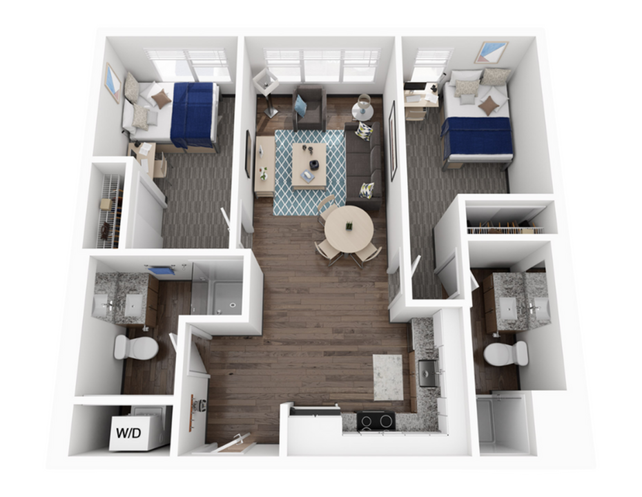 Modelo de apartamento: 2x2 CTDesde $1,2862 Dormitorios, 2 Baños, 752 sq ftDisponible Ahora![]()