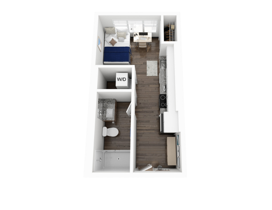 Sx1 APP - Plano 2 Unidad de apartamento: Attached BathModelo de apartamento: Sx1 APP$1,500Estudio, 1 Baño, 449 sq ftDisponible August 17, 2026Sx1 ATP
