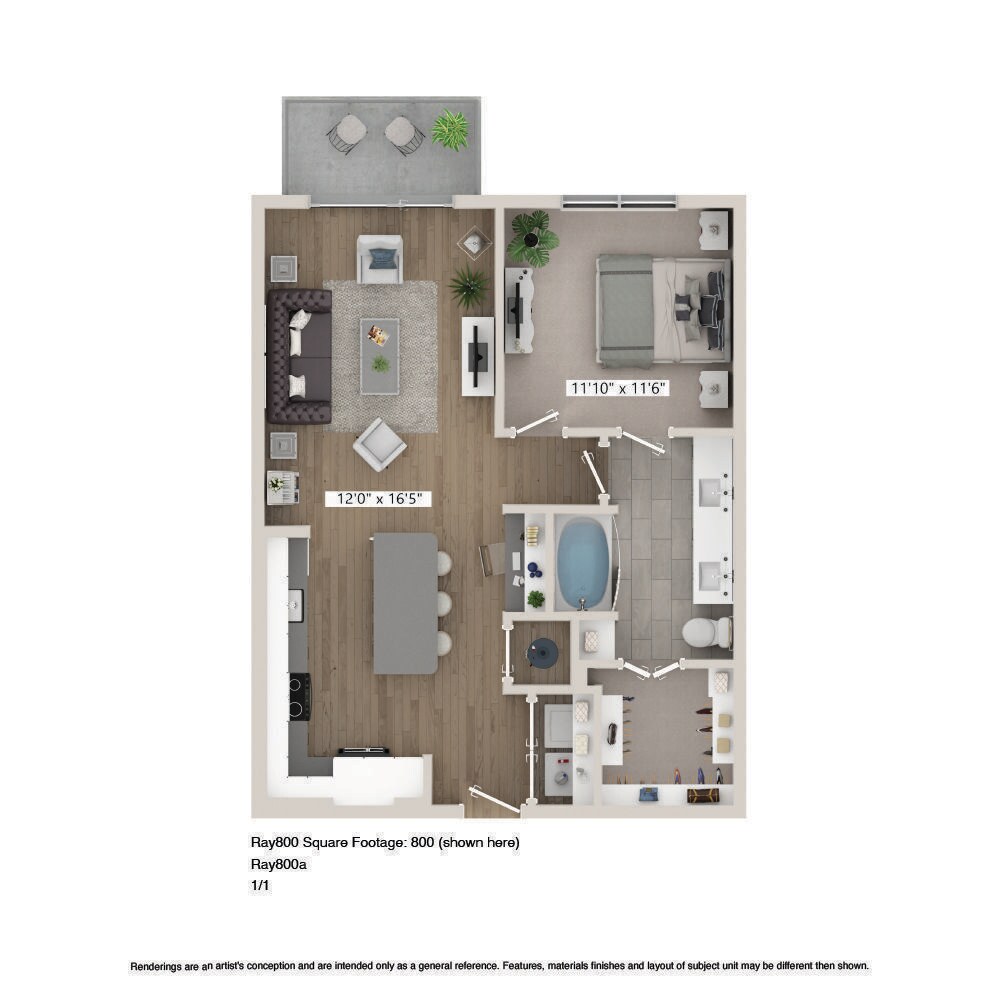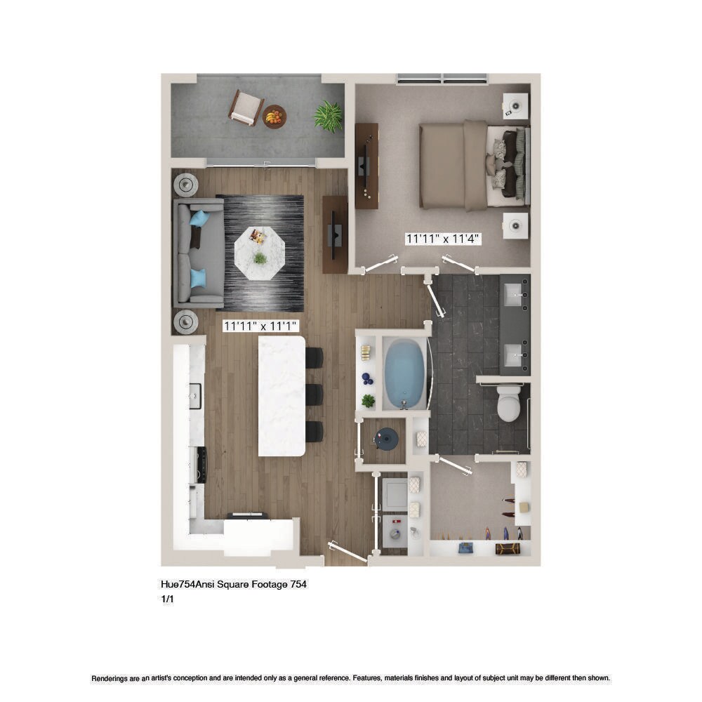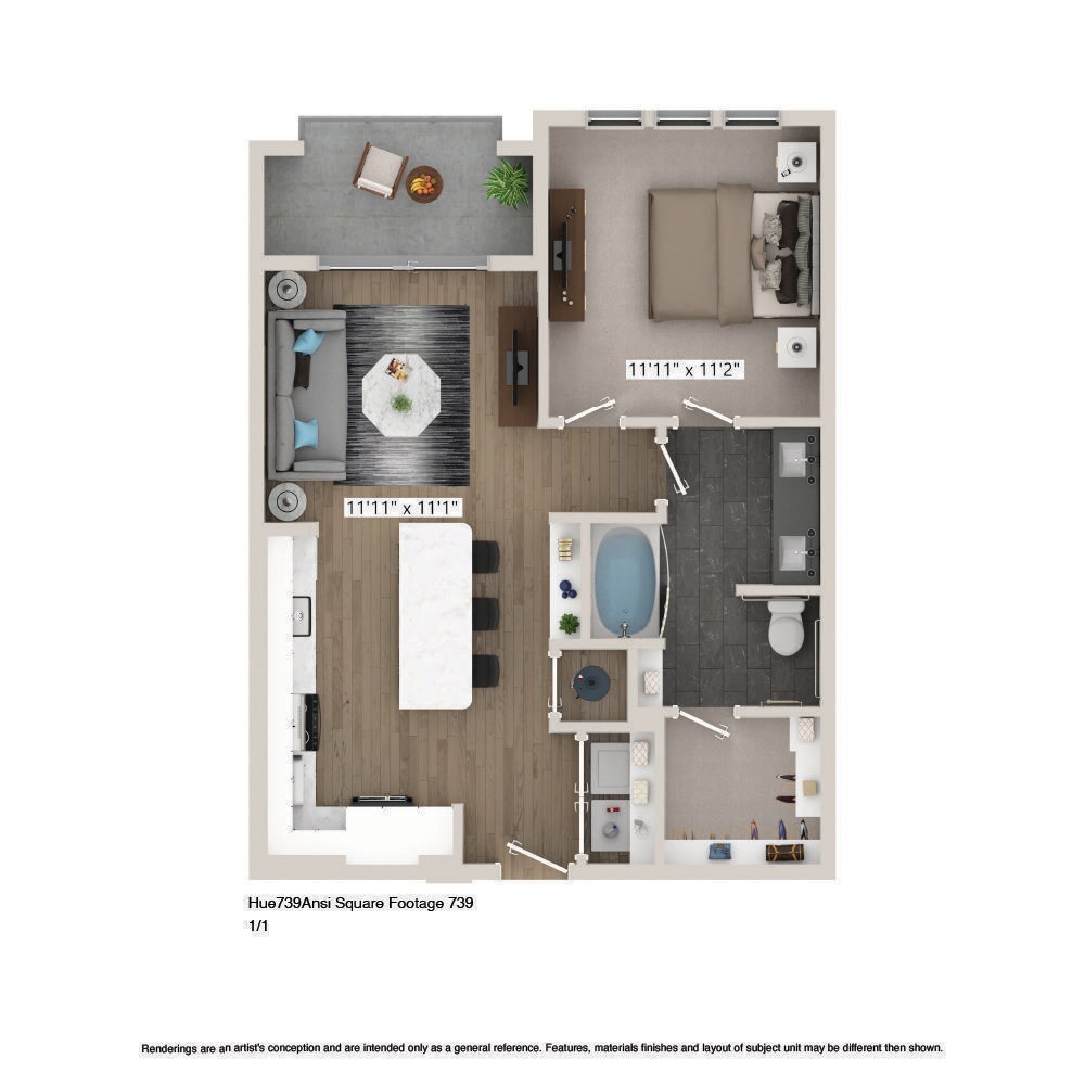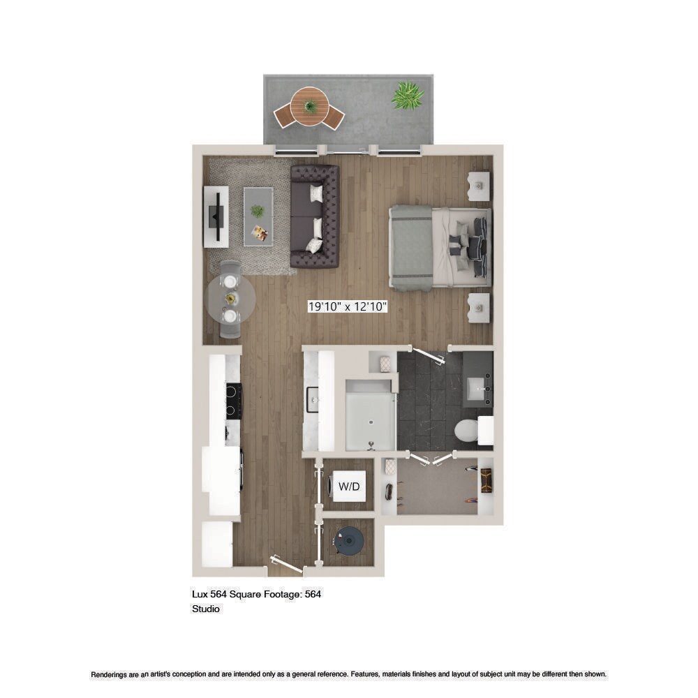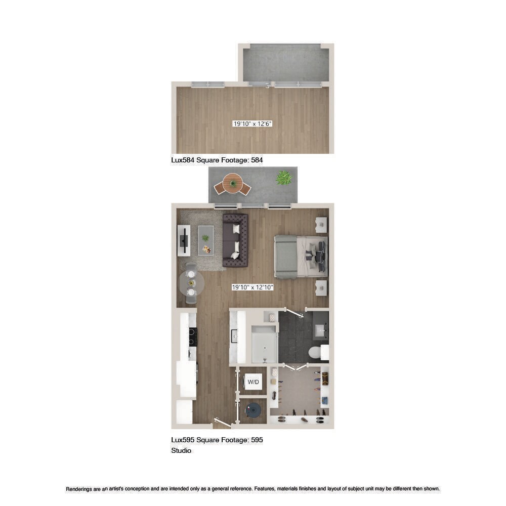 Estudio, 1 Baño, 584 pies²Disponible AhoraGalería del Modelo