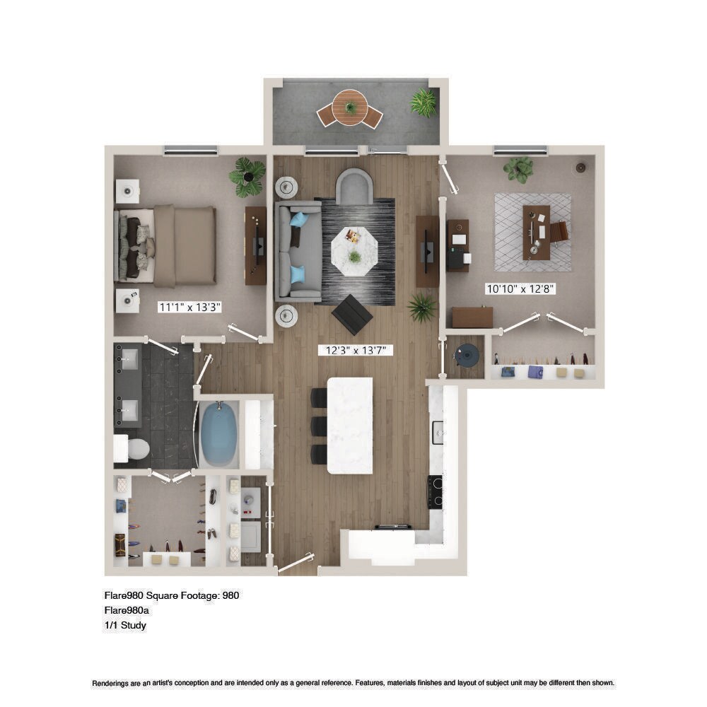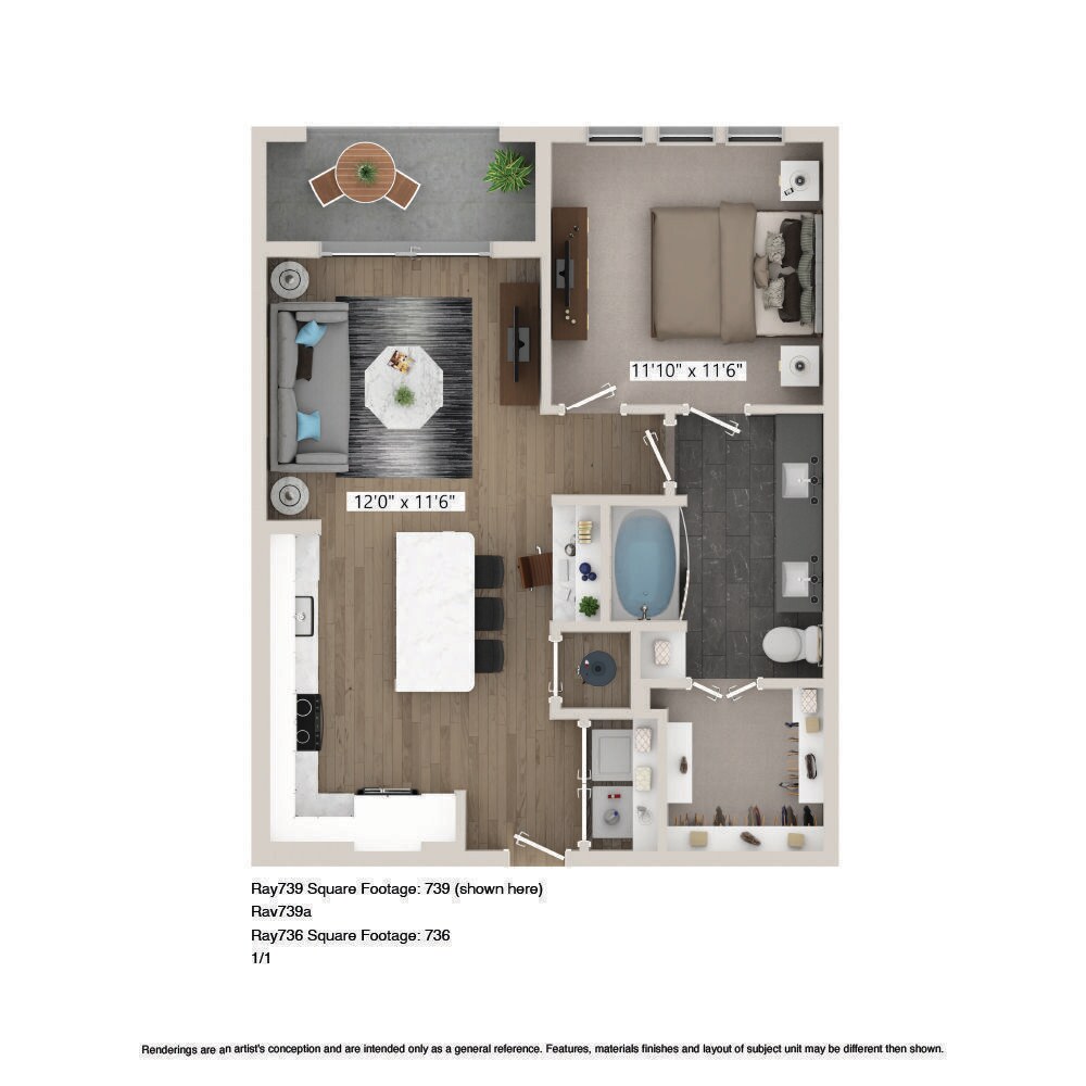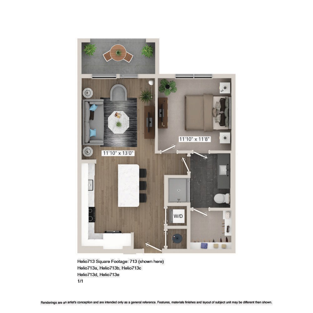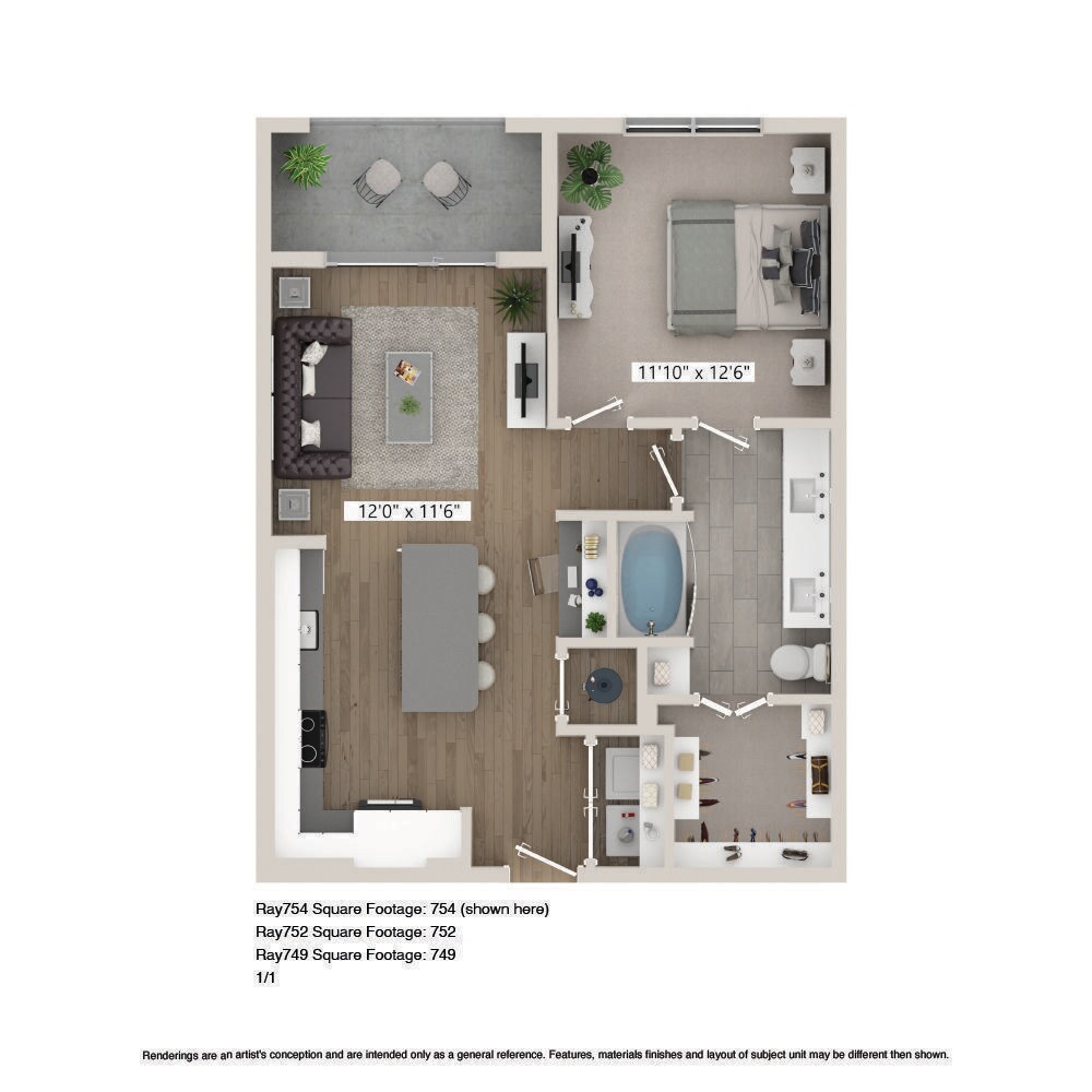 Estudio, 1 Baño, 584 pies²Disponible AhoraGalería del Modelo