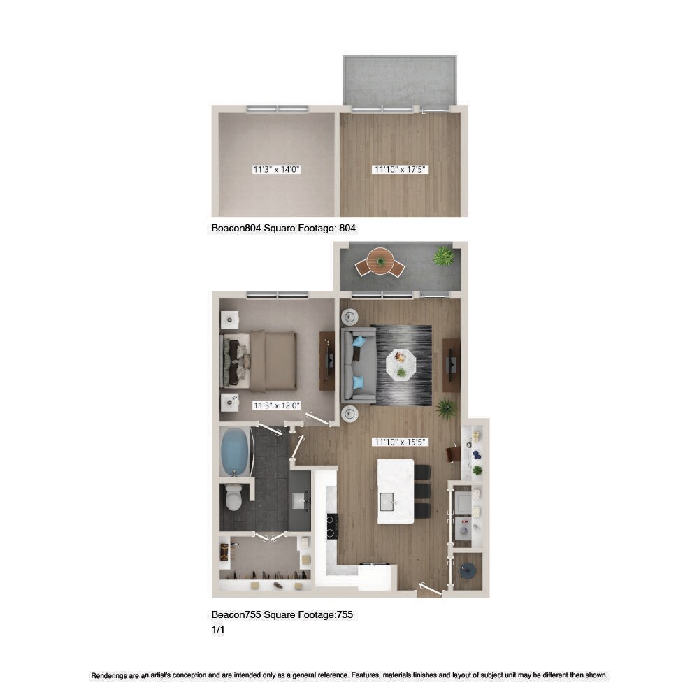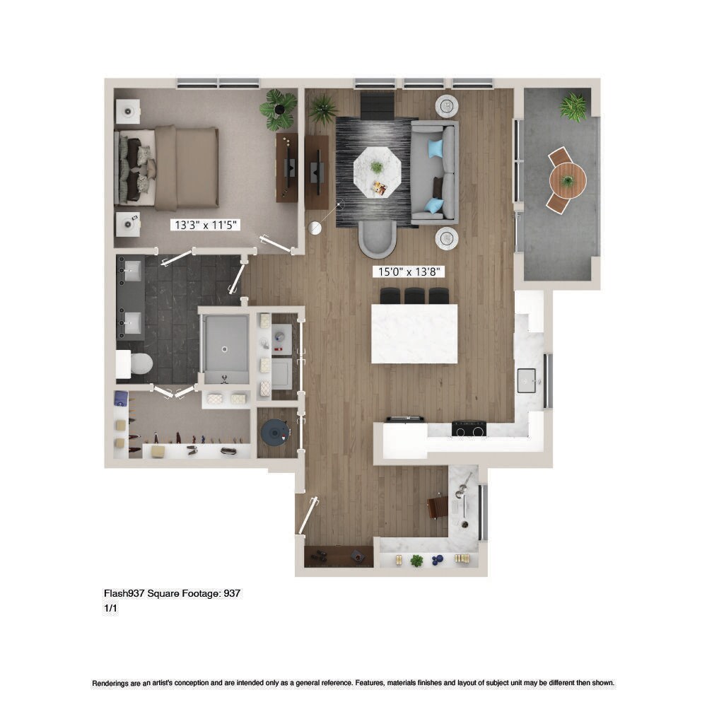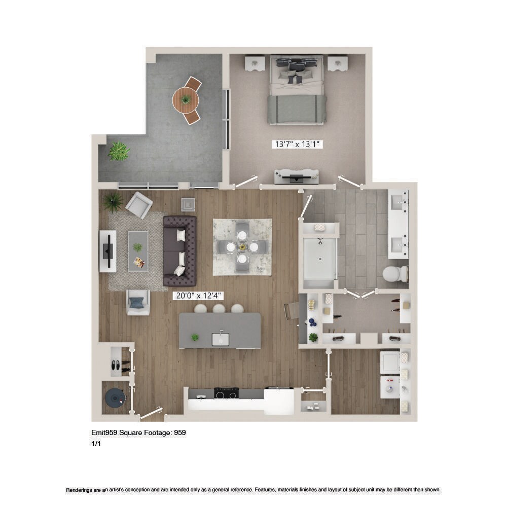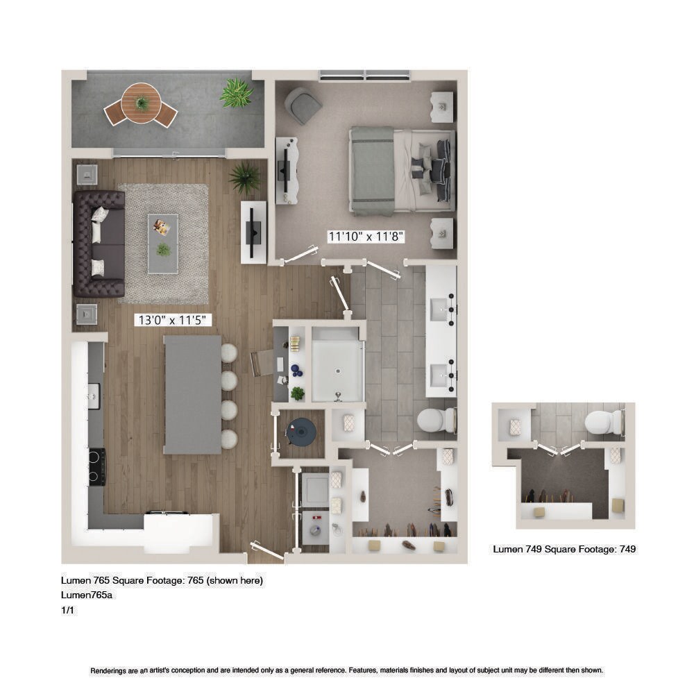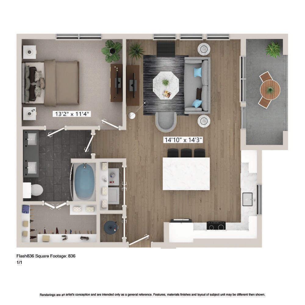 Estudio, 1 Baño, 584 pies²Disponible AhoraGalería del Modelo