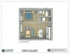 Modelo de apartamento: First Colony Flats Unit 2041 Dormitorio, 1 Baño, 614 sq ftNo DisponibleFirst Colony Flats Unit 204 - Plano 1 First Colony Flats Unit 116