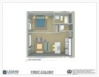 Modelo de apartamento: First Colony Flats Unit 1101 Dormitorio, 1 Baño, 666 sq ftNo DisponibleFirst Colony Flats Unit 110 - Plano 1 First Colony Flats Unit 108