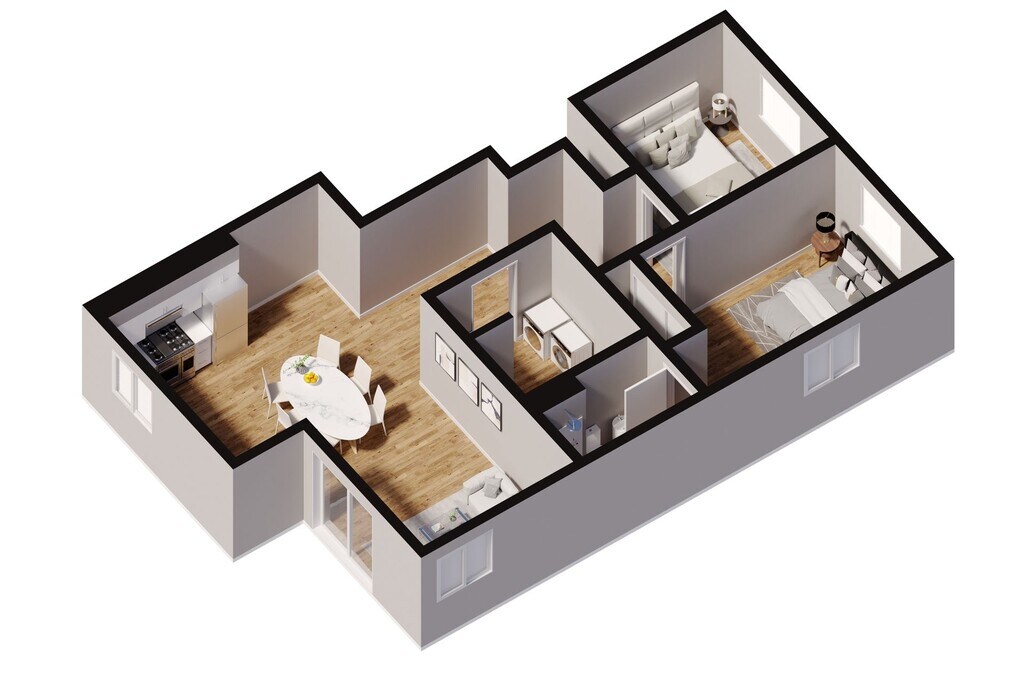 Modelo de apartamento: 2x2$1,5452 Dormitorios, 2 Baños, 1092 sq ftDisponible February 23, 2026![]()