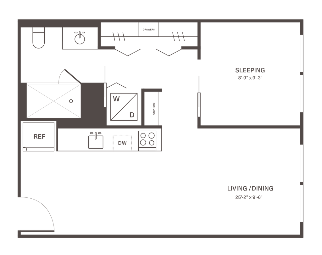 S1 - Plano 1 Unidad de apartamento: 1-443Modelo de apartamento: S1$1,463Estudio, 1 Baño, 440 sq ftDisponible Ahora1 Dormitorio