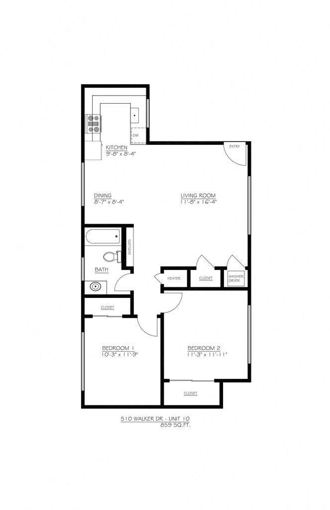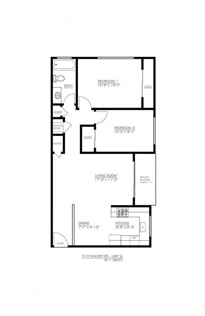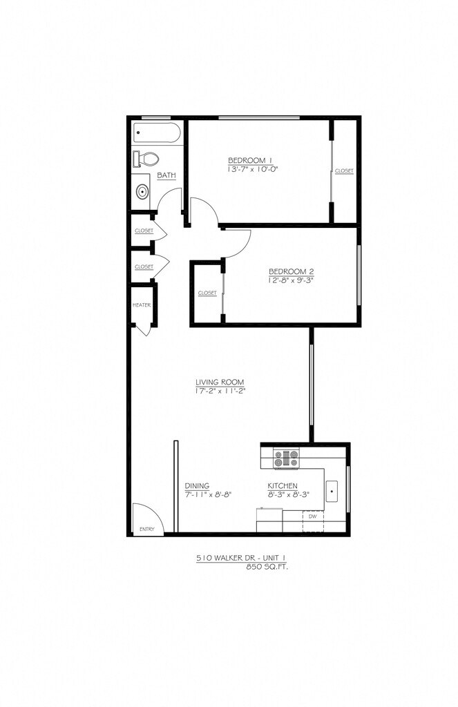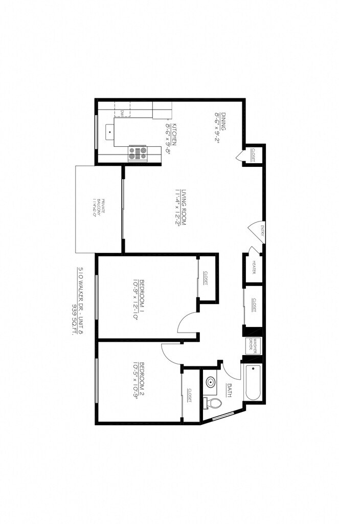 2 Dormitorios, 1 Baño, 939 pies²Galería del Modelo