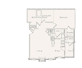 Modelo de apartamento: 1 Bed, 1 bath1 Dormitorio, 1 Baño, 750 sq ftNo Disponible![]()