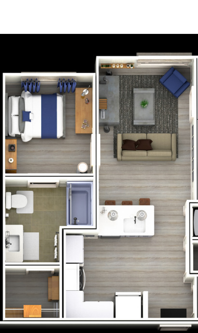 1 Dormitorio, 1 Baño, 612 pies²Disponible AhoraGalería del Modelo