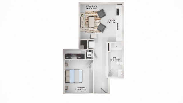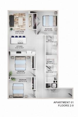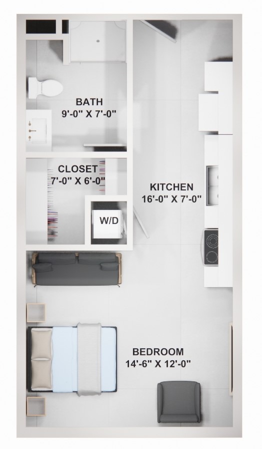Estudio, 1 Baño, 425-473 pies²Disponible AhoraGalería del Modelo