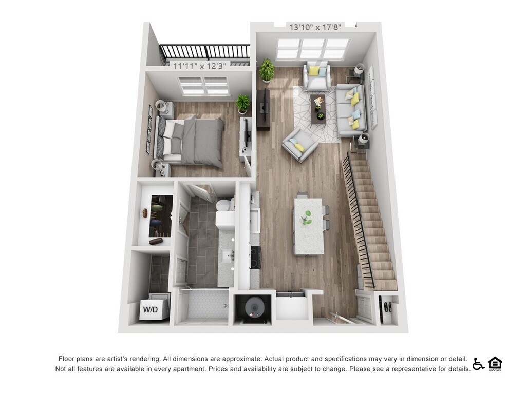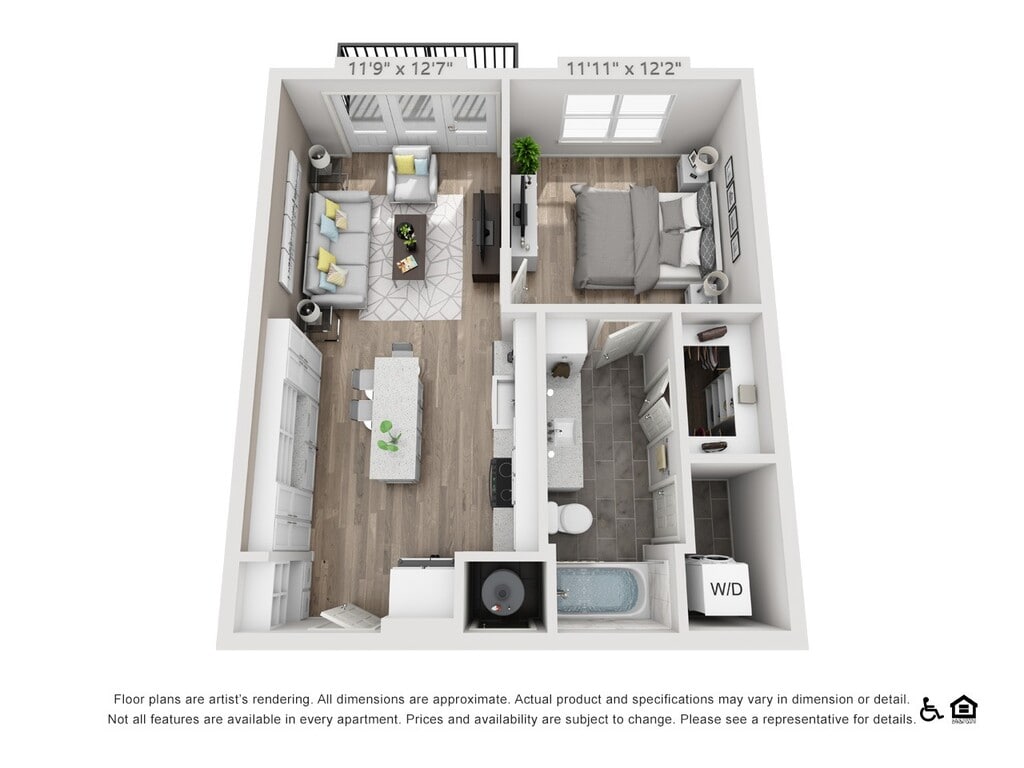 Modelo de apartamento: A1Desde $1,6231 Dormitorio, 1 Baño, 658-758 sq ftDisponible AhoraLos planos de la planta son una interpretación artística. Todas las dimensiones son aproximadas. Los tamaños o el detalle del producto real y sus especificaciones pueden variar. No todas las características están disponibles en todos los hogares para rentar. Los precios y la disponibilidad están sujetos a cambios. El alquiler que se muestra es mensual. Se pueden aplicar ciertos cargos, por ejemplo, entrega de paquetes, recolección de basura, agua, servicios, etc. Depositos varian. Consulta a un representante para conocer detalles.