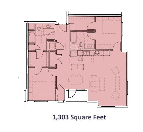 Modelo de apartamento: 2 BED 2 BATH B$1,7002 Dormitorios, 2 Baños, 1303 sq ftDisponible December 1, 2025PlanosFotos![]()