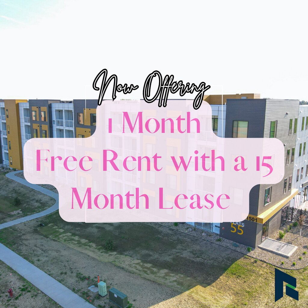 La promoción que hay actualmente para la renta en FLATS 55 es: FIRST MONTH FREE WITH SIGNING OF A 12 MONTH LEASE*Offer expires 11/30/25