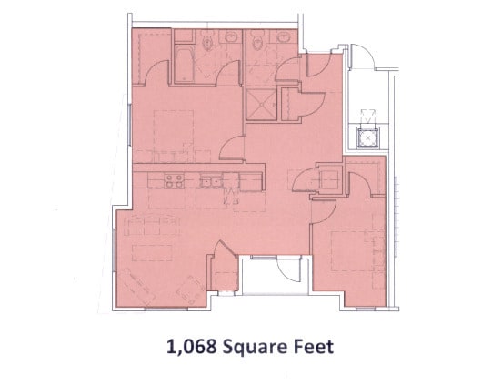 1 BED 1 BATH CORNER - Plano 2 2 Dormitorios