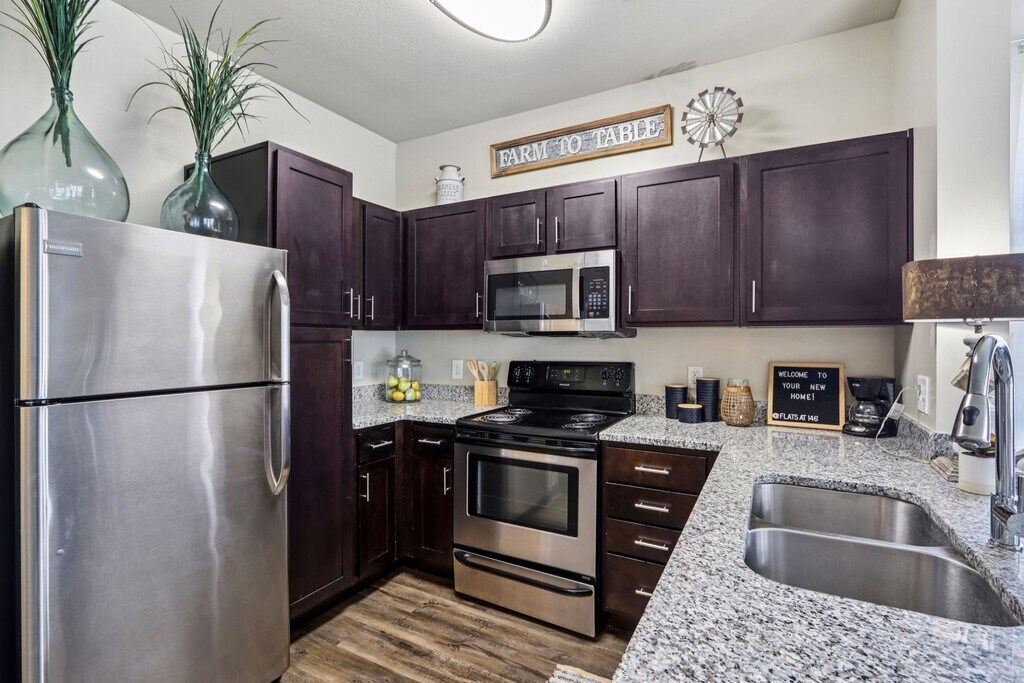Flats at 146 | Specials Available ofrece apartamentos de 1 a 3 Dormitorios desde $1,340 con 880–1,279 pies cuadrados. Aquí está el precio actual y la disponibilidad: