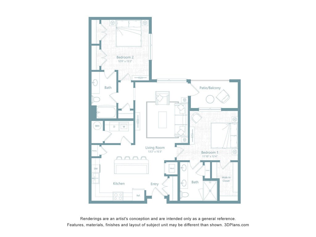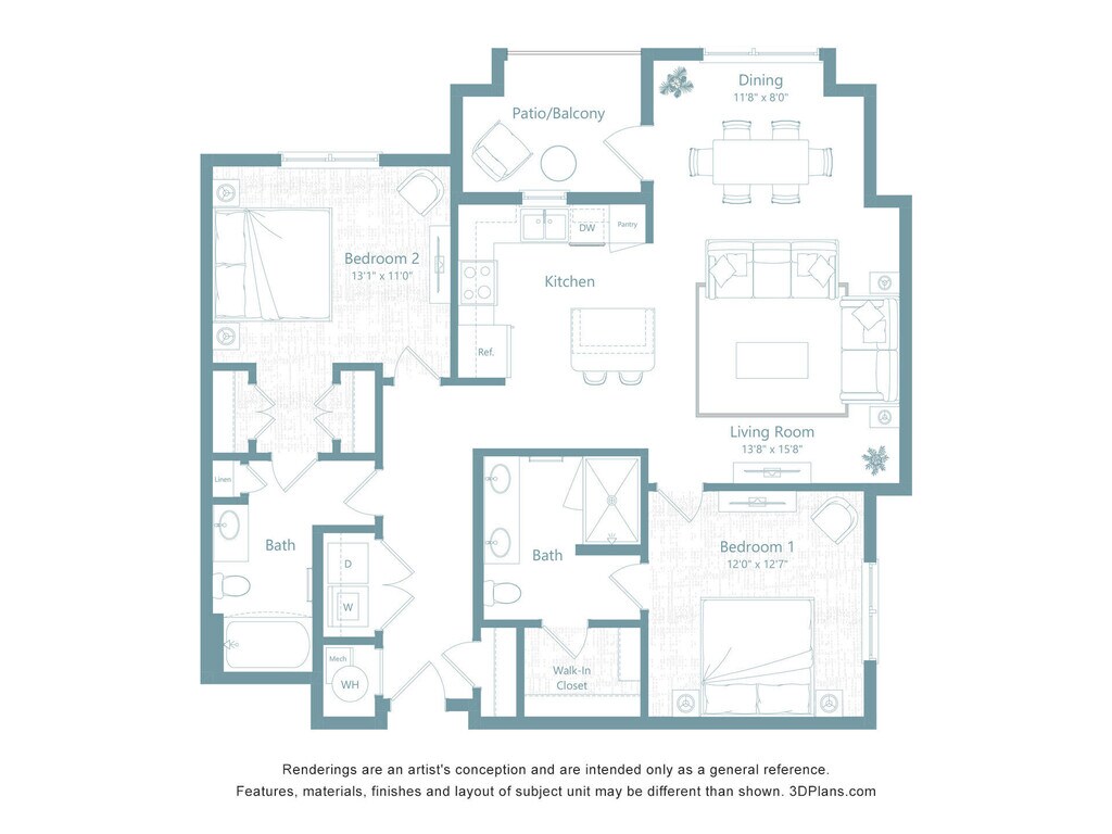 Modelo de apartamento: C2Desde $1,4651 Dormitorio, 1 Baño, 759 sq ftDisponible Ahora![]()