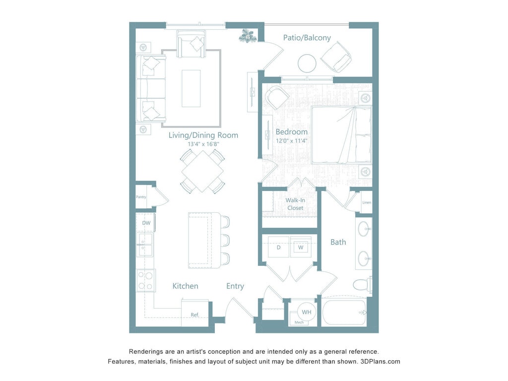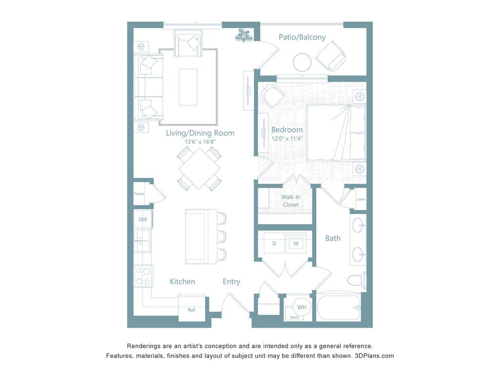 1 Dormitorio, 1 Baño, 759 pies²Disponible AhoraGalería del Modelo