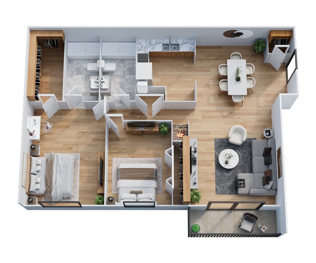 2 Dormitorios, 2 Baños, 1000 pies²Disponible AhoraGalería del Modelo