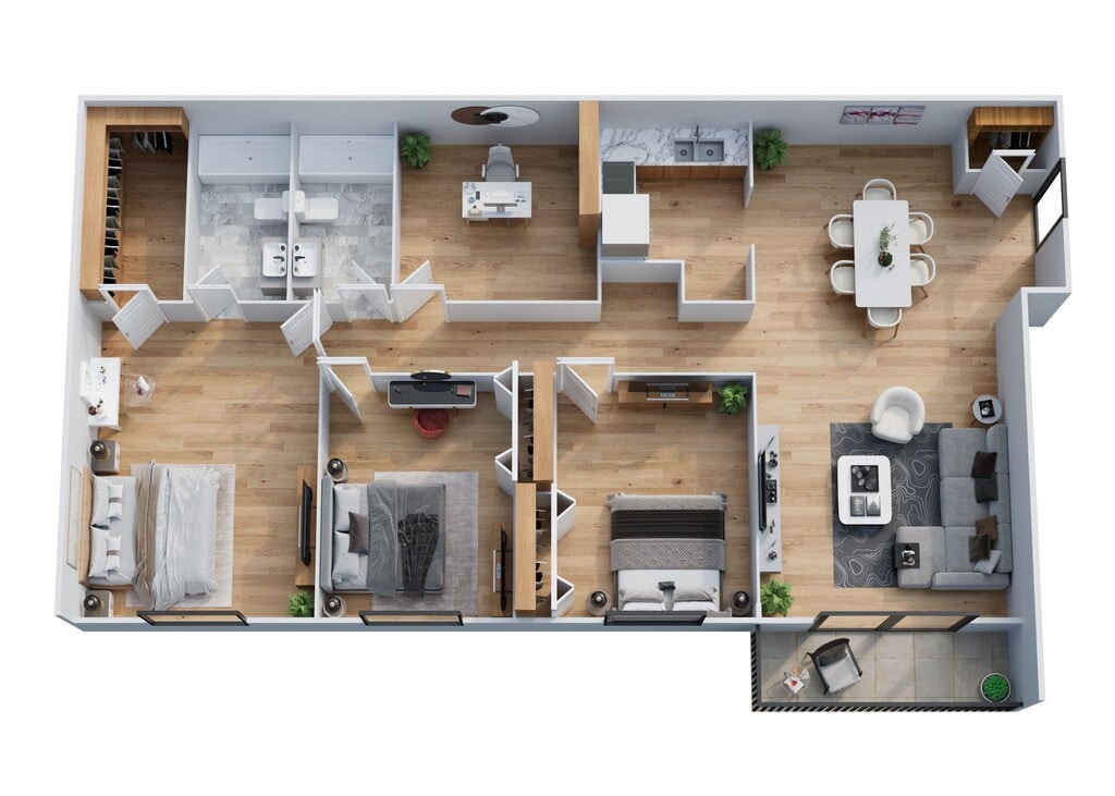 Modelo de apartamento: Three Bedrooms, Two BathroomsLlame para Precios3 Dormitorios, 2 Baños, sq ftNo Disponible![]()