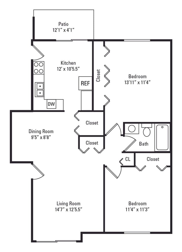 Modelo de apartamento: 2 Bed 1 Bath B$1,7952 Dormitorios, 1 Baño, 987 sq ftDisponible AhoraPlanosFotos3D Tours![]()