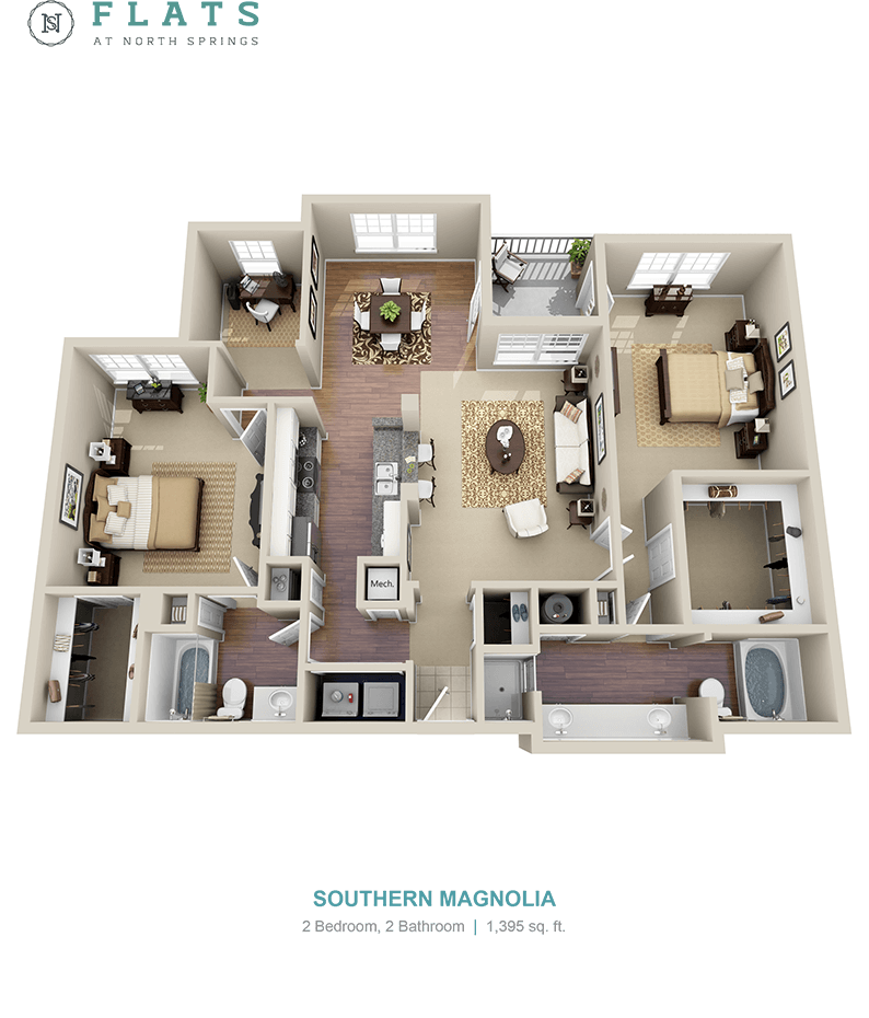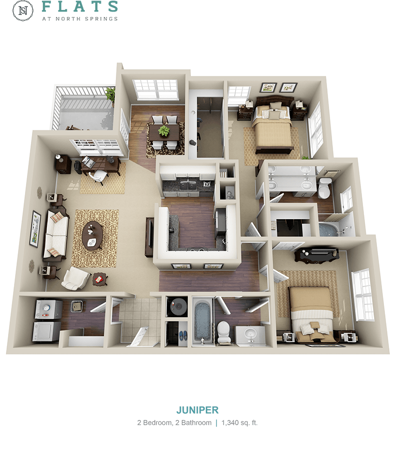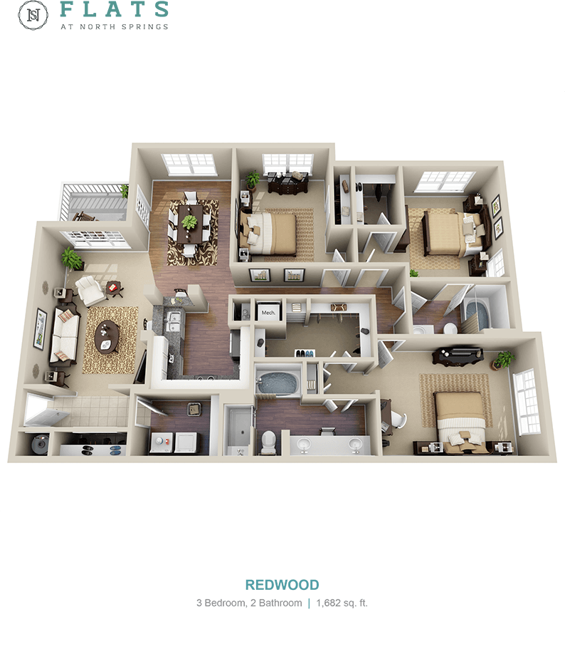 Flats at North Springs ofrece apartamentos de 1 a 3 Dormitorios desde $1,344 con 780–1,682 pies cuadrados. Aquí está el precio actual y la disponibilidad: