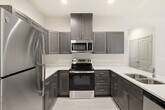 Every home features upscale finishes including quartz countertops, luxury plank flooring, washer/dryer hookups, walk in closets, upgraded stainless steel appliances and fixtures. Prefer a wooded view, a corner unit, or vaulted ceilings? We have select units that offer just that. There will be 2 bedroom/2-bathroom units, 3 bedrooms/2-bathroom units as well as 2 bedroom/2-bathroom patio home style units with a front/back porch, 1 car garage and a mailbox. We have walking paths/biking trails surrounding the property (you can also access Commerce Parkways sidewalks that can take you to Ernie Harris Pkwy-great for runners/cyclists), a pickleball court, basketball court, playground and dog park in a park like setting. Our community center offers a fitness room, laundry mat, coffee bar, a large event room with a full kitchen and TVs (can be rented for special events), a smaller room with a smart board for business meetings etc, as well as a mail room for convenient package pickup. Coming in the spring of 2026 there will also be a community pool! Find your perfect home located near local restaurants, hospitals, a new supersized Kroger and we are in Kentucky's award-winning school district! Not to mention we are right off of the I-71 interstate for a quick work commute! Located at 1000 Flats at Twenty, La Grange, KY 40031 (directly across from the Oldham County Health Department). VISIT US AT FLATSATTWENTY.COM