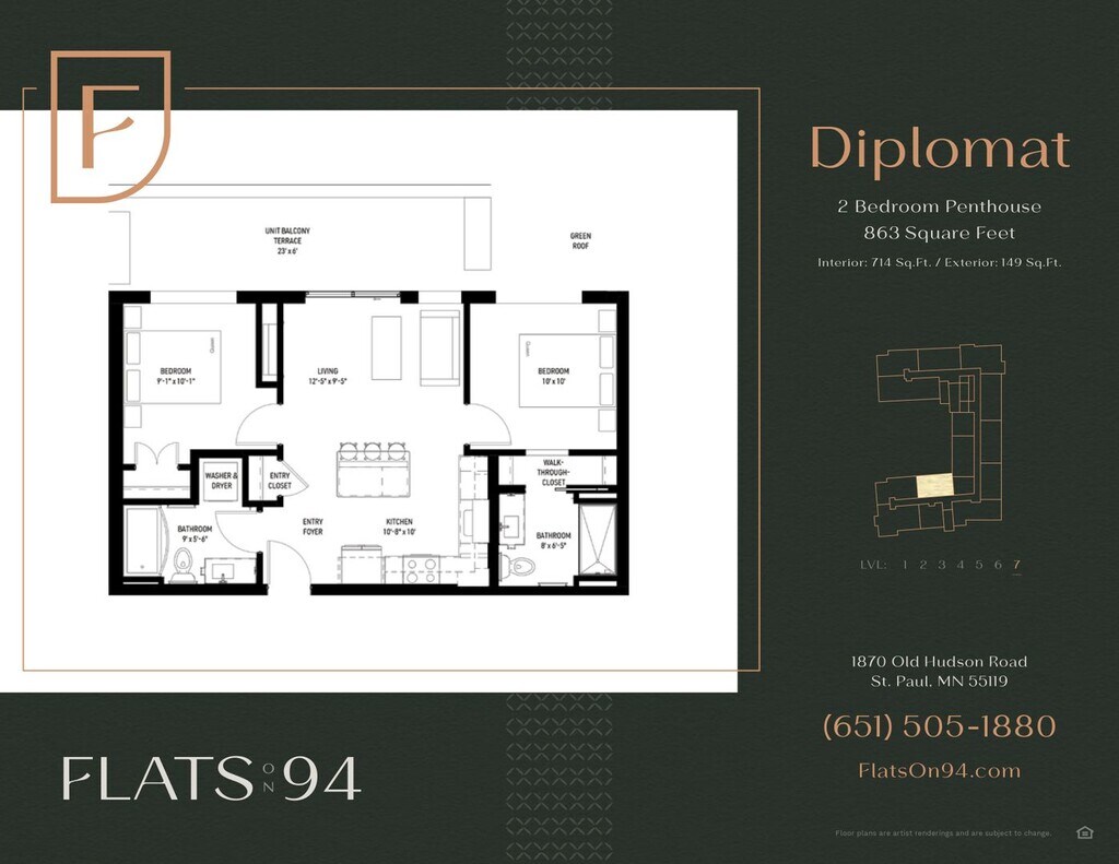 Flats on 94 ofrece una gran variedad de servicios de estilo de vida de trabajo/diversión cerca de lo mejor que St. Paul tiene para ofrecer. Con una ubicación ideal cerca de las tiendas de Woodbury, Battle Creek Park y la I-94 para un fácil acceso a ambos centros de la ciudad, estás a solo minutos de excepcionales restaurantes, tiendas minoristas, pintorescos senderos y las principales empresas. Pero tu lugar favorito en Twin Cities puede estar justo en casa. Desde nuestros espacios modernos y decoración de diseñador hasta nuestras numerosas comodidades pensadas al detalle, cada detalle en Flats on 94 ha sido diseñado para brindar una sensación de lujo tranquilo y acogedor. Ofrecemos una amplia variedad de exclusivos planos de planta que se adaptan a tu estilo de vida, y tres paquetes de acabados diferentes que se adaptan a tu estilo. Elegante y estilo spa, alegre y moderno, elegante y sofisticado, tú eliges el ambiente. Incluso encontrarás un balcón privado en apartamentos seleccionados. Flats on 94 también ofrece acceso a una gran variedad de comodidades del complejo. Ejercítate en nuestro gimnasio y estudio de yoga. Juega al billar en nuestra sala social. Haz parrilladas en nuestra terraza privada en el segundo piso. Encuentra un lugar tranquilo para trabajar en nuestra sala de reuniones con Wi-Fi. Además, disfruta de estacionamiento subterráneo, entrega de paquetes segura, servicio de conserjería y mucho más. Bienvenido a la vida moderna en apartamento con un estilo completamente nuevo: el tuyo. Bienvenido a Flats on 94.