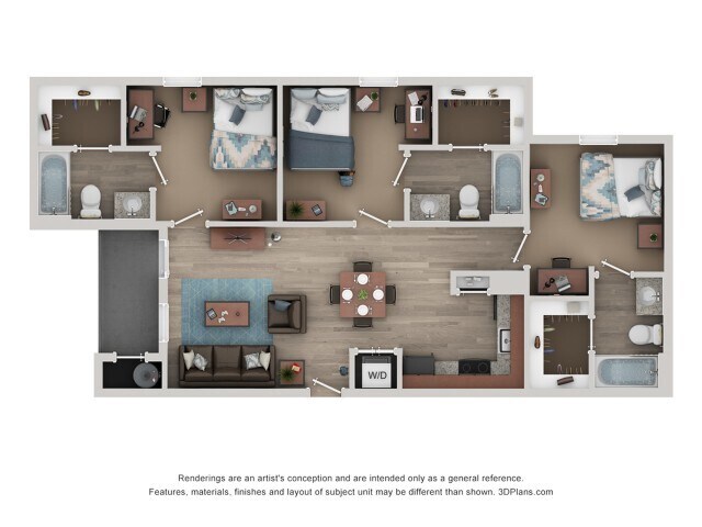 El rango de alquiler de Apartamentos 1 dormitorios a 4 dormitorios en Flatts at South Campus van desde $539 a $1,778