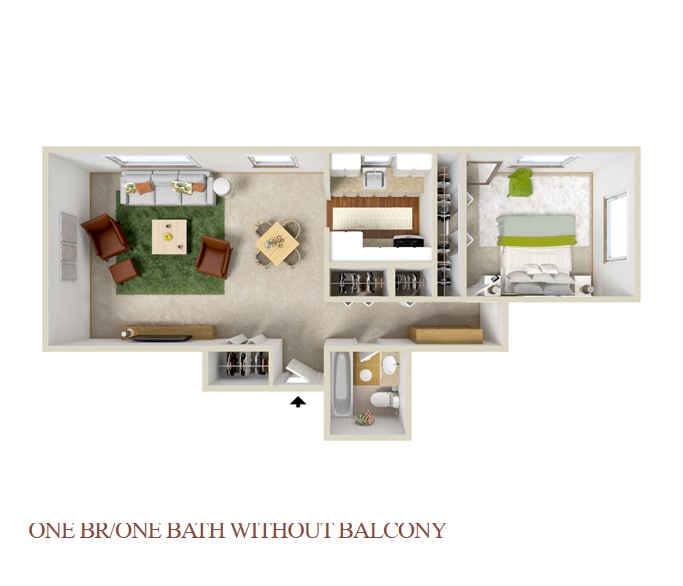 Modelo de apartamento: 675 SF$1,1251 Dormitorio, 1 Baño, 675 sq ftNo Disponible![]()