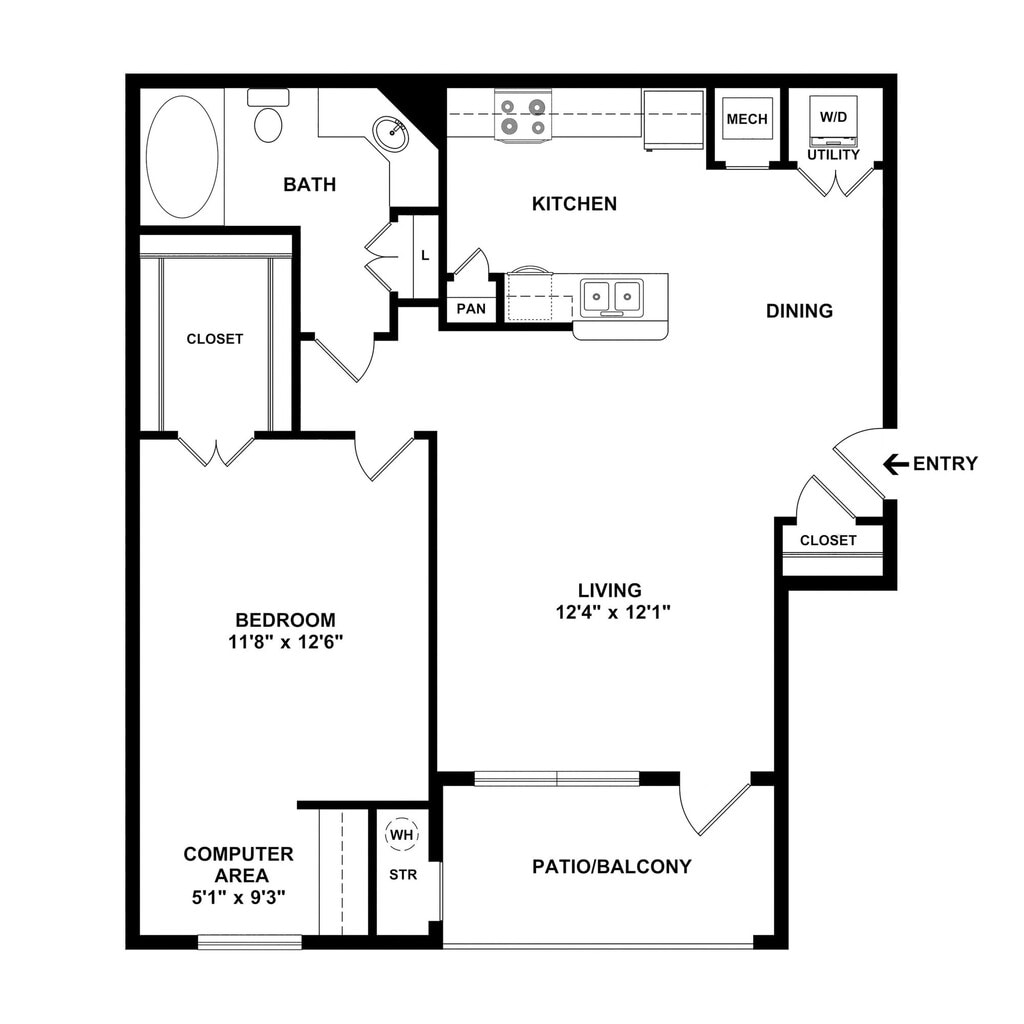 1 Dormitorio, 1 Baño, 705 pies²Disponible AhoraGalería del Modelo