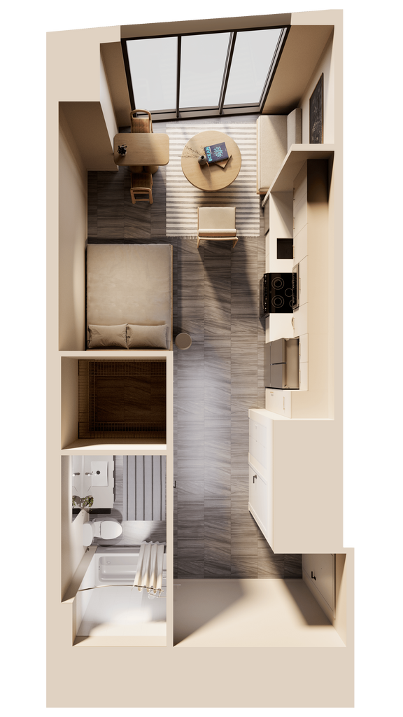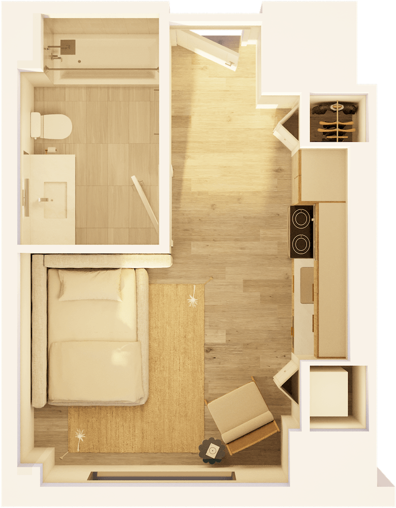 Estudio, 1 Baño, 418 pies²Disponible AhoraGalería del Modelo