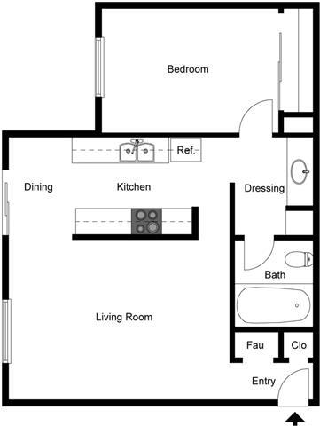 Estudio, 1 Baño, 543 pies²Disponible AhoraGalería del Modelo