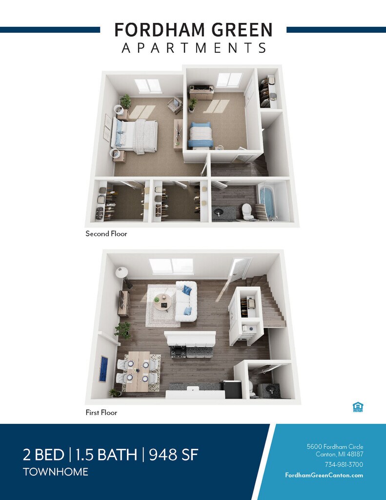 Modelo de apartamento: 2 BED 1.5BA TWNHOUSE$1,8752 Dormitorios, 1.5 Baños, 948 sq ftDisponible Ahora![]()