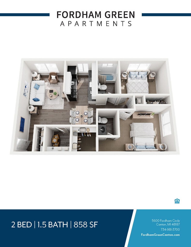 Modelo de apartamento: 2 BEDROOM 1.5 BATHDesde $1,3252 Dormitorios, 1.5 Baños, 858 sq ftDisponible Ahora![]()
