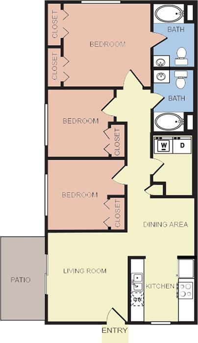 Modelo de apartamento: 3 Bedroom Ranch$1,5253 Dormitorios, 2 Baños, 1048 sq ftNo Disponible![]()