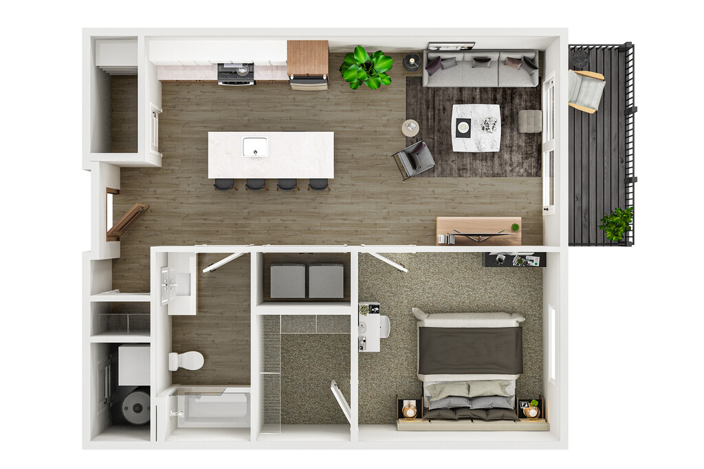 1 Dormitorio, 1 Baño, 712 pies²Galería del Modelo