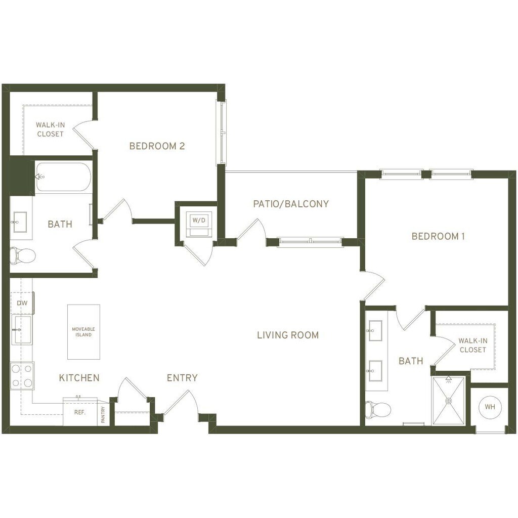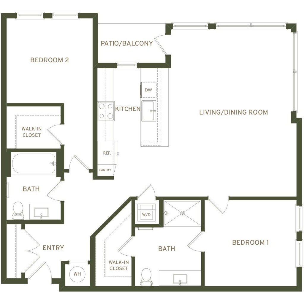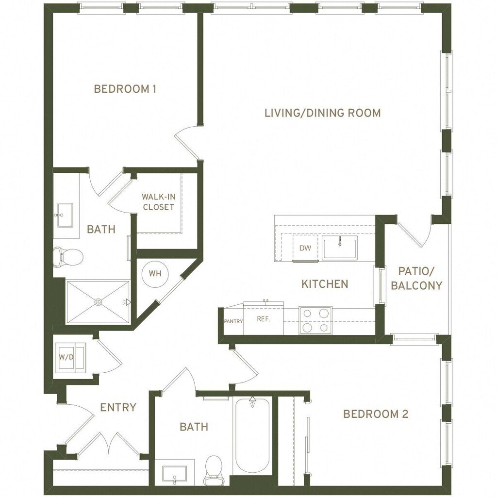 S4 - Plano 1 Unidad de apartamento: 746Modelo de apartamento: S4$1,455Estudio, 1 Baño, 476 sq ftDisponible AhoraPlano: S2