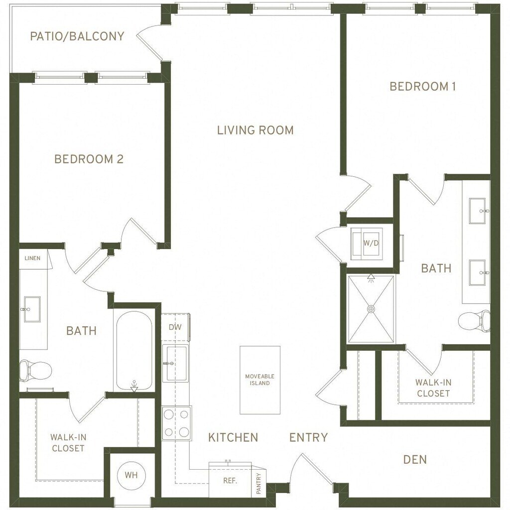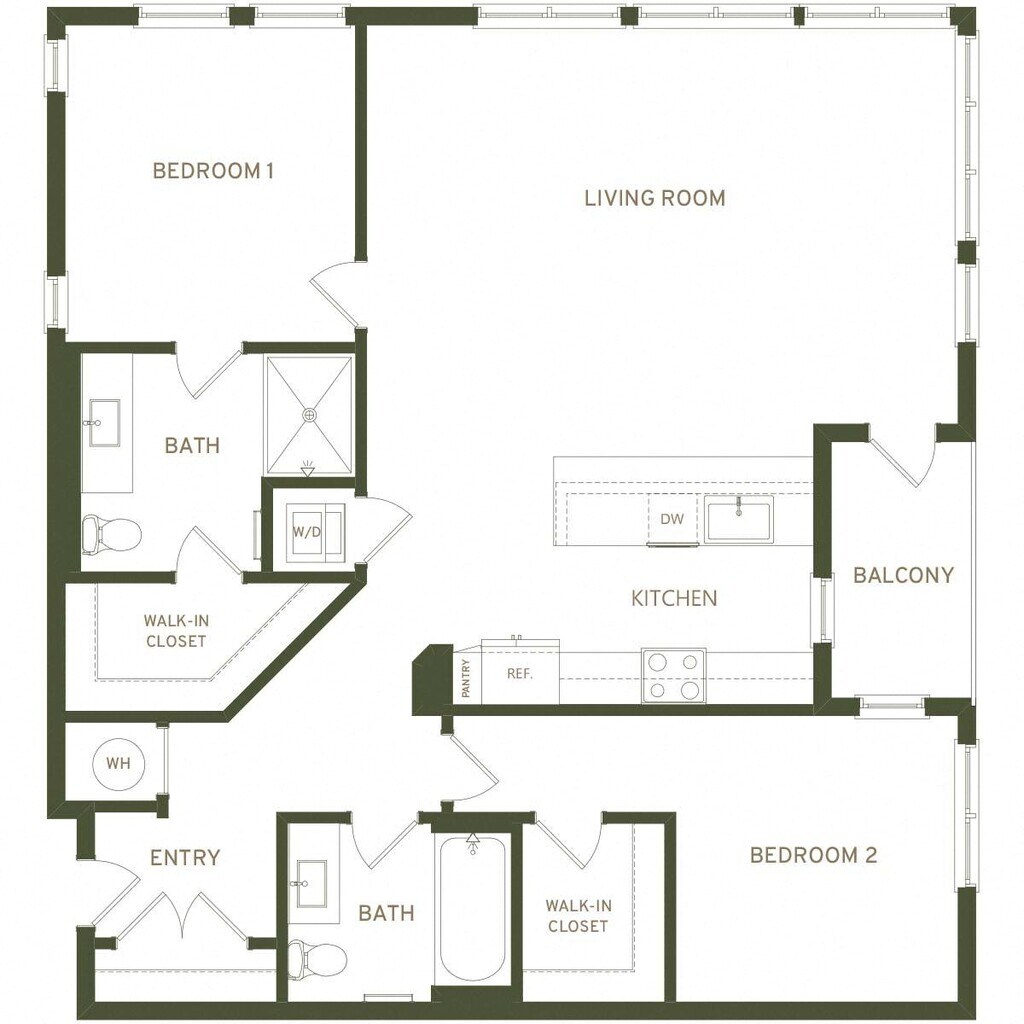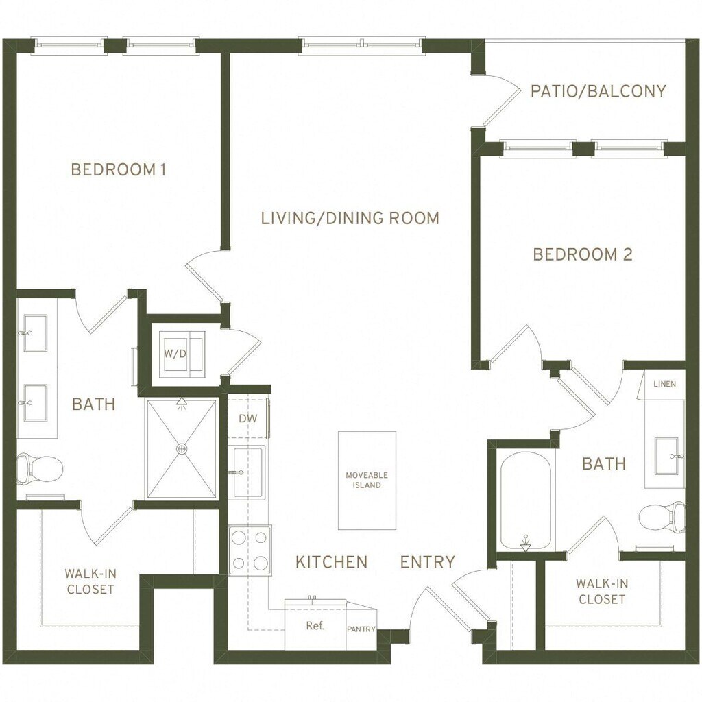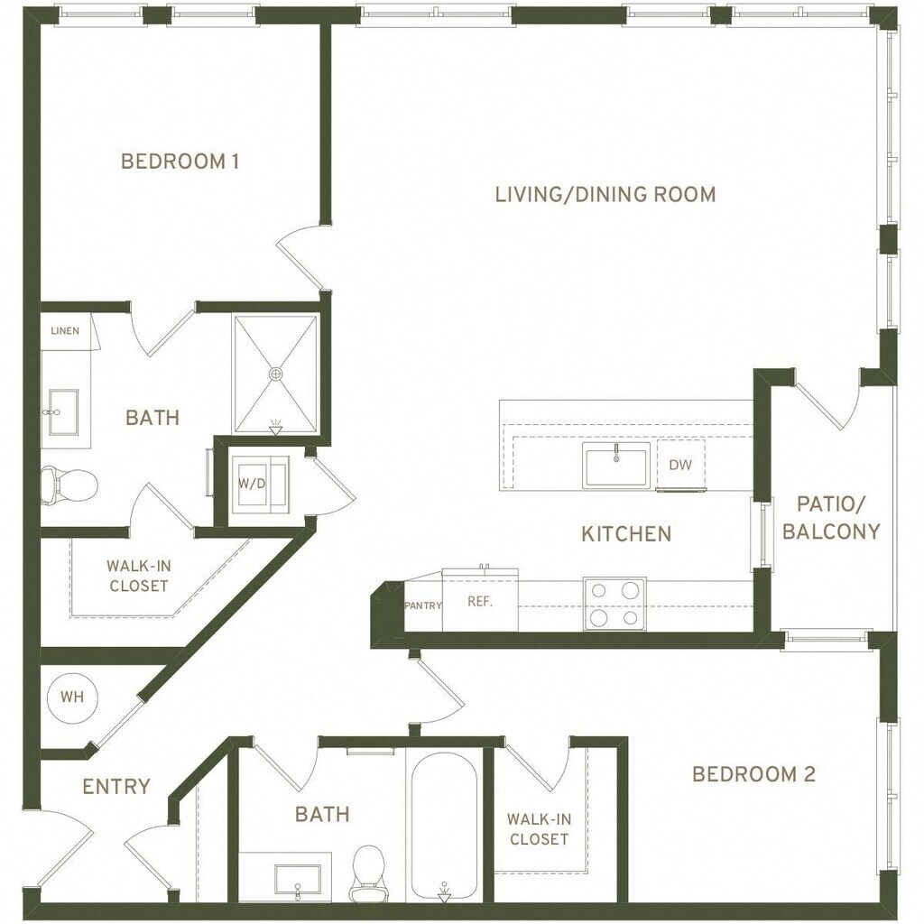 S4 - Plano 1 Unidad de apartamento: 746Modelo de apartamento: S4$1,455Estudio, 1 Baño, 476 sq ftDisponible AhoraPlano: S2
