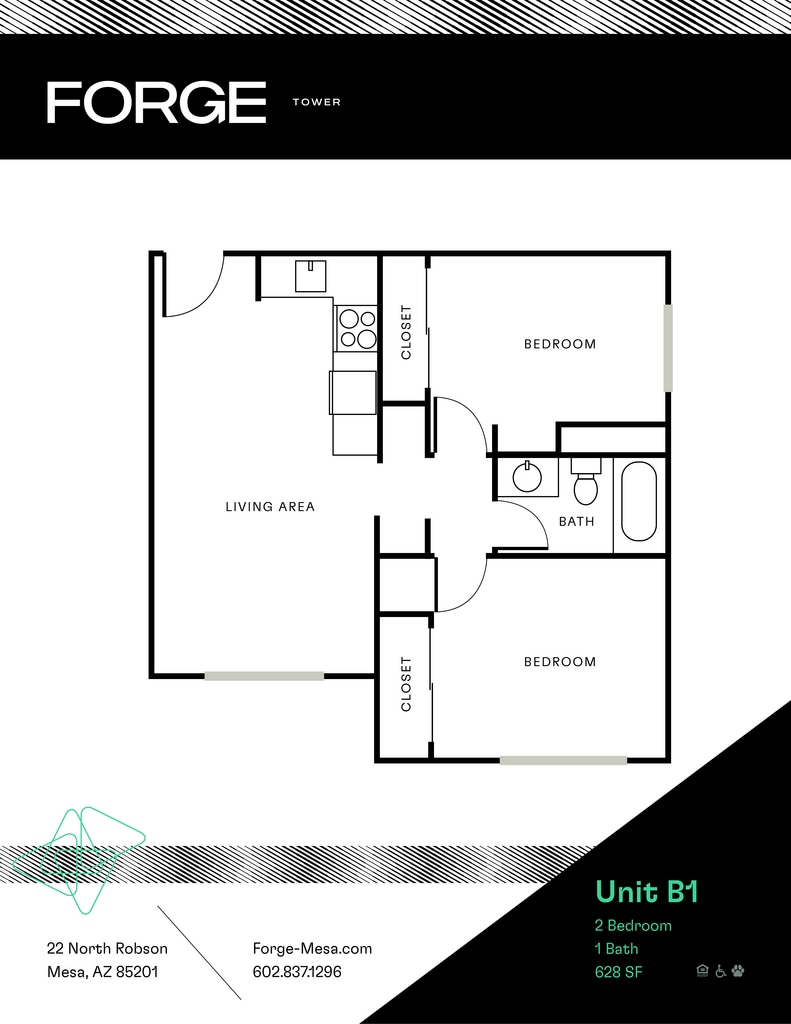 Forge Tower se encuentra en el Barrio Downtown Mesa y el código postal 85201 de Mesa, AZ. Esta comunidad está gestionada profesionalmente por Mark-Taylor Companies