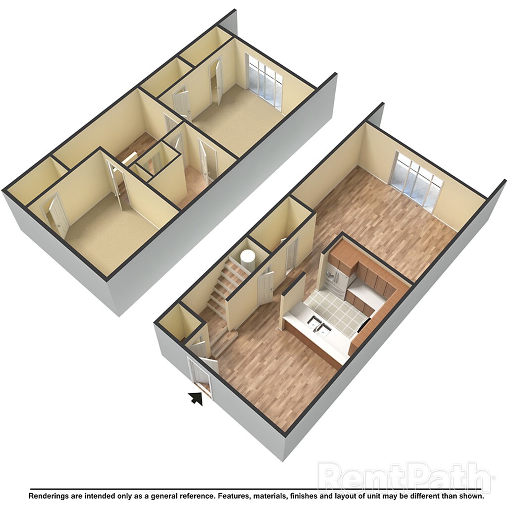 Modelo de apartamento: 2 bedroom Townhouse$9442 Dormitorios, 1.5 Baños, 1088 sq ftDisponible AhoraPlanosFotos![]()