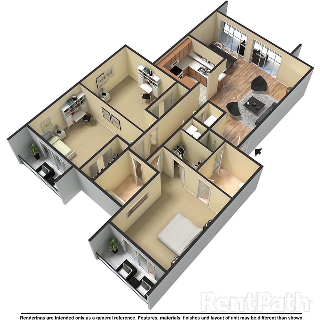 Modelo de apartamento: 3 Bedroom ALlame para Precios3 Dormitorios, 2 Baños, 1249 sq ftNo Disponible![]()