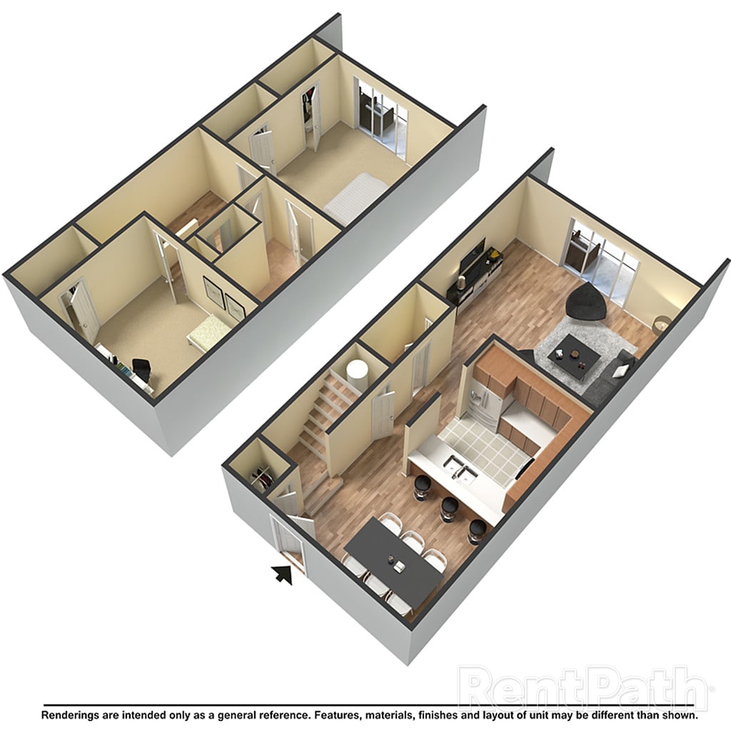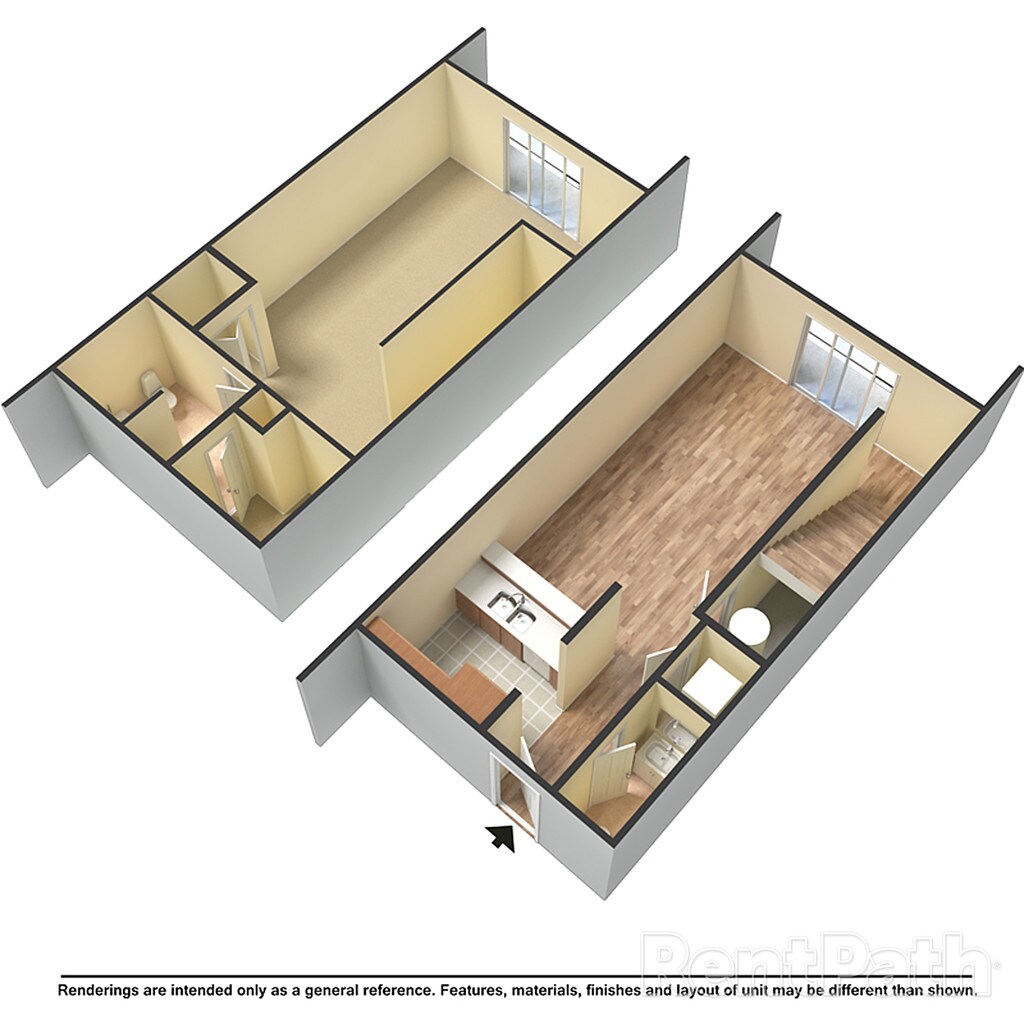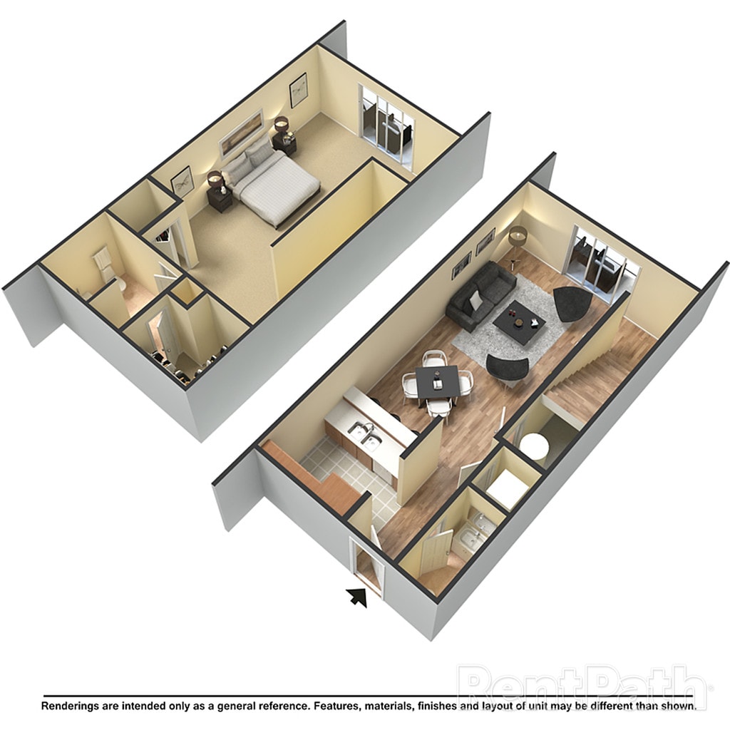 Modelo de apartamento: 1 bedroom TownhouseLlame para Precios1 Dormitorio, 1.5 Baños, 747-896 sq ftNo DisponiblePlanosFotos![]()