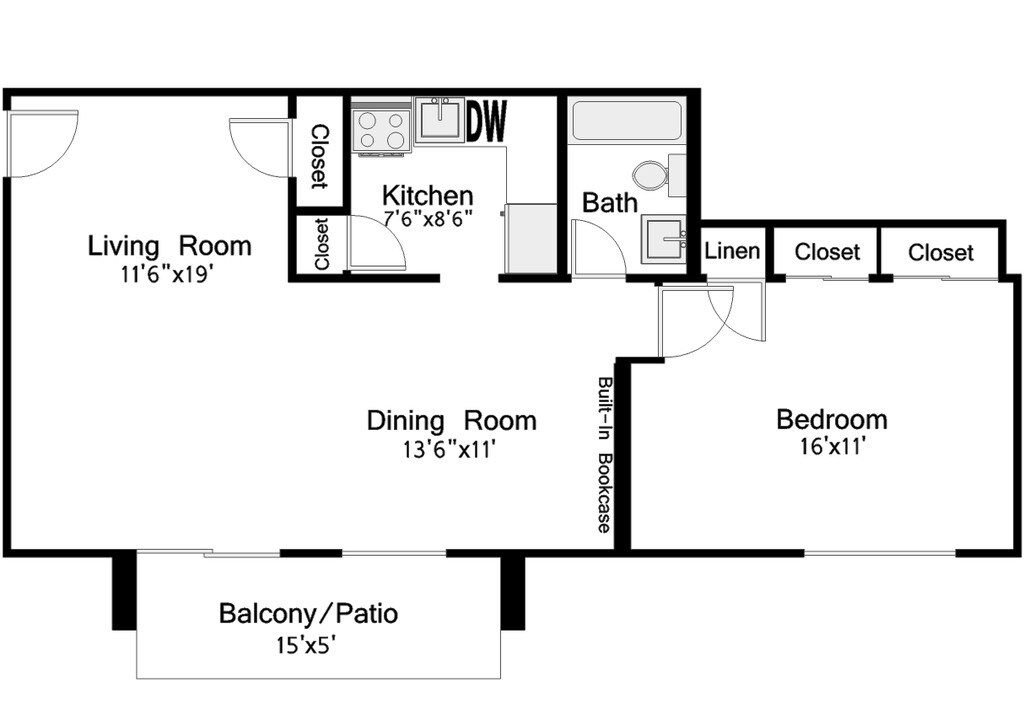 1 Dormitorio, 1 Baño, 694 pies²Disponible AhoraGalería del Modelo