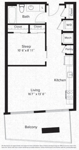 S6A - Plano Unidad de apartamento: 661411Modelo de apartamento: S6A$1,685Estudio, 1 Baño, 506 sq ftDisponible AhoraS11A