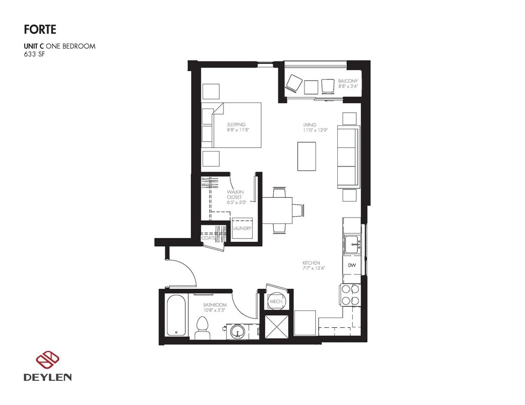 1 Dormitorio, 1 Baño, 743 pies²Disponible AhoraGalería del Modelo