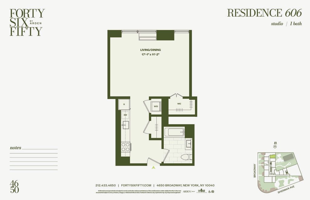 A world of wonder awaits at Forty Six Fifty; a stunning collection of brand new studio, one, and two bedroom homes in Inwood, overlooking Fort Tryon Park and The Cloisters at the northern tip of Manhattan. Striking architecture and sustainable design by Arden Group deliver a lifestyle that exceeds expectations, marrying the quiet elegance of Inwood with seamless access to the rest of the city. Biophilic features like a living green lobby and landscaped rooftop offer a home in-tune with nature. Lush terraces and manicured gardens allow for a sense of escape from the grind, while some of the city's most beloved park spaces provide the ideal backyard. Go beyond the ordinary, at a lifestyle oasis that features stunning interiors and extraordinary amenities, all with panoramic park and river views. Enjoy meticulously-crafted residences with generous interiors and state-of-the-art finishes, as part of an experience in truly holistic living that goes beyond and above anything that has come before. Upfront fees to be paid, not included in the monthly rent, are: Application fee: $20 per application Holding fee: $500, applied to the first months rent, refundable within 72 hours if cancelled Security deposit: Equal to One Months Rent Pet Fee: $400 non-refundable Pet Rent: $50 per month per pet Storage fee: $75 - $125 per month Bike storage fee: $15 per month per bike Residents are responsible for electricity- submetered based on usage, billed monthly Rose Associates is the exclusive broker/agent for the Landlord (Landlord's Agent) for this property. This advertisement is not intended to create any other agency relationships between a real estate licensee and the Landlord. Prospective renters, their brokers and/or agents understand that neither the Landlord nor Landlord's Agent will charge or collect fees to a prospective renter in connection with this property except for fees as permitted by law and disclosed above. Neither Landlord nor Landlord's Agent assume responsibility for any brokerage fees incurred by a prospective renter in connection with this property under any direct agreement they have entered into with another real estate licensee. This listing is being advertised to prospective renters only and should not be re-published.