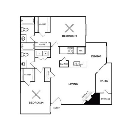 Modelo de apartamento: B2Desde $1,2702 Dormitorios, 2 Baños, 1010 sq ftDisponible Ahora![]()