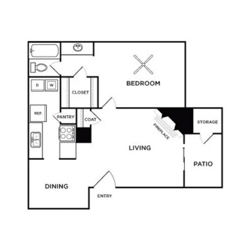 Modelo de apartamento: A1Desde $9351 Dormitorio, 1 Baño, 564 sq ftDisponible Ahora![]()